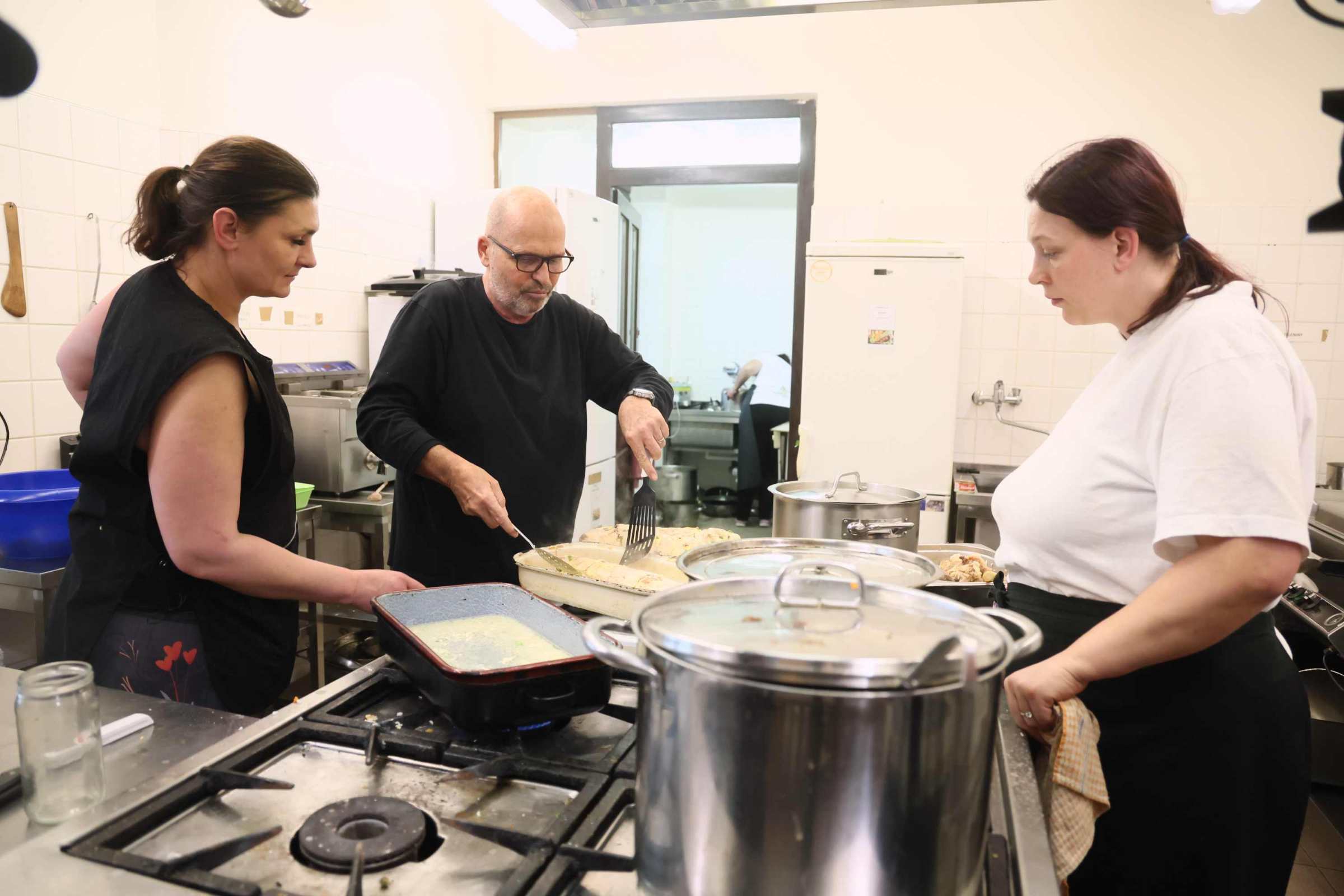 Náladu v kuchyni ilustruje i přiznání jedné z přítomných: „Já se bojím jako sviňa.“ Chaos, nejistota a nervozita se přenášejí i na talíře. „Tomu sýru se uvnitř strouhanky nelíbí, utíká na všechny strany,“ glosuje Pohlreich.