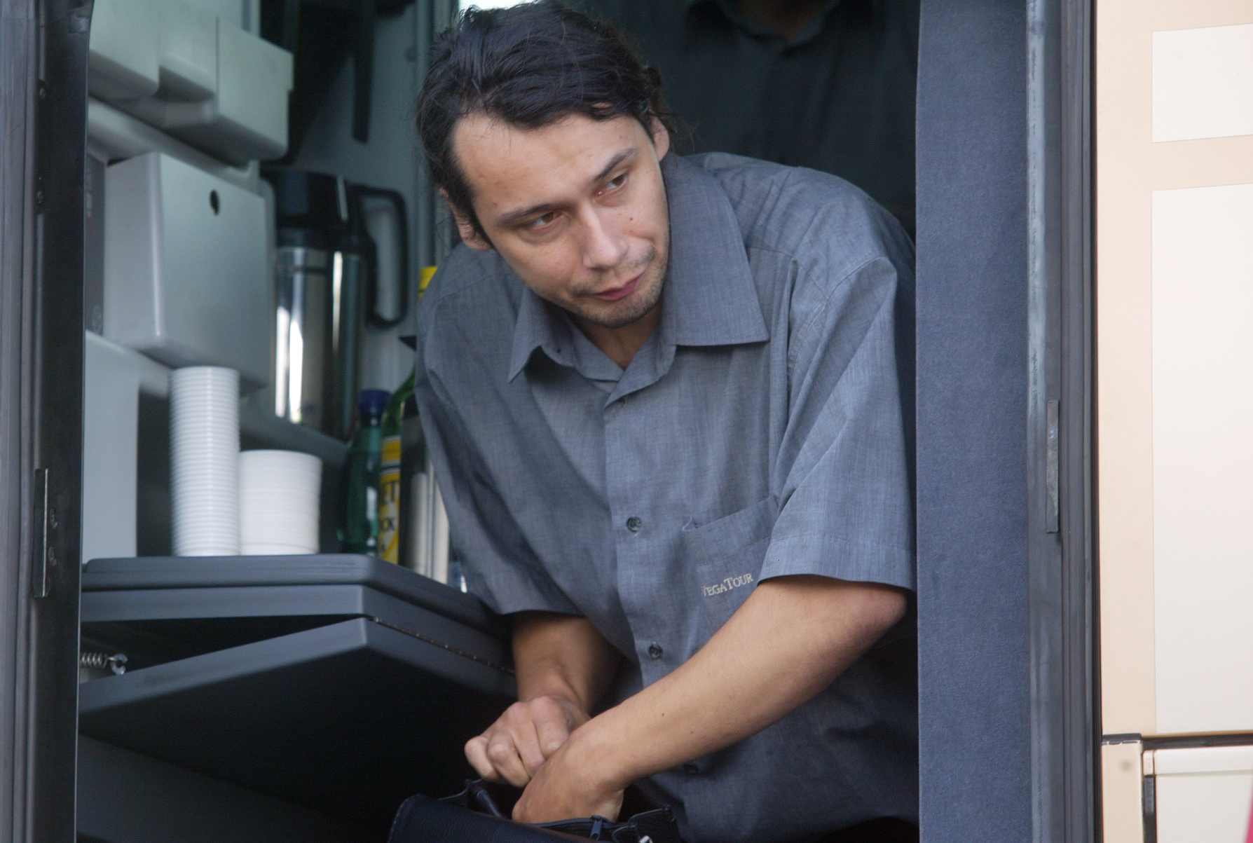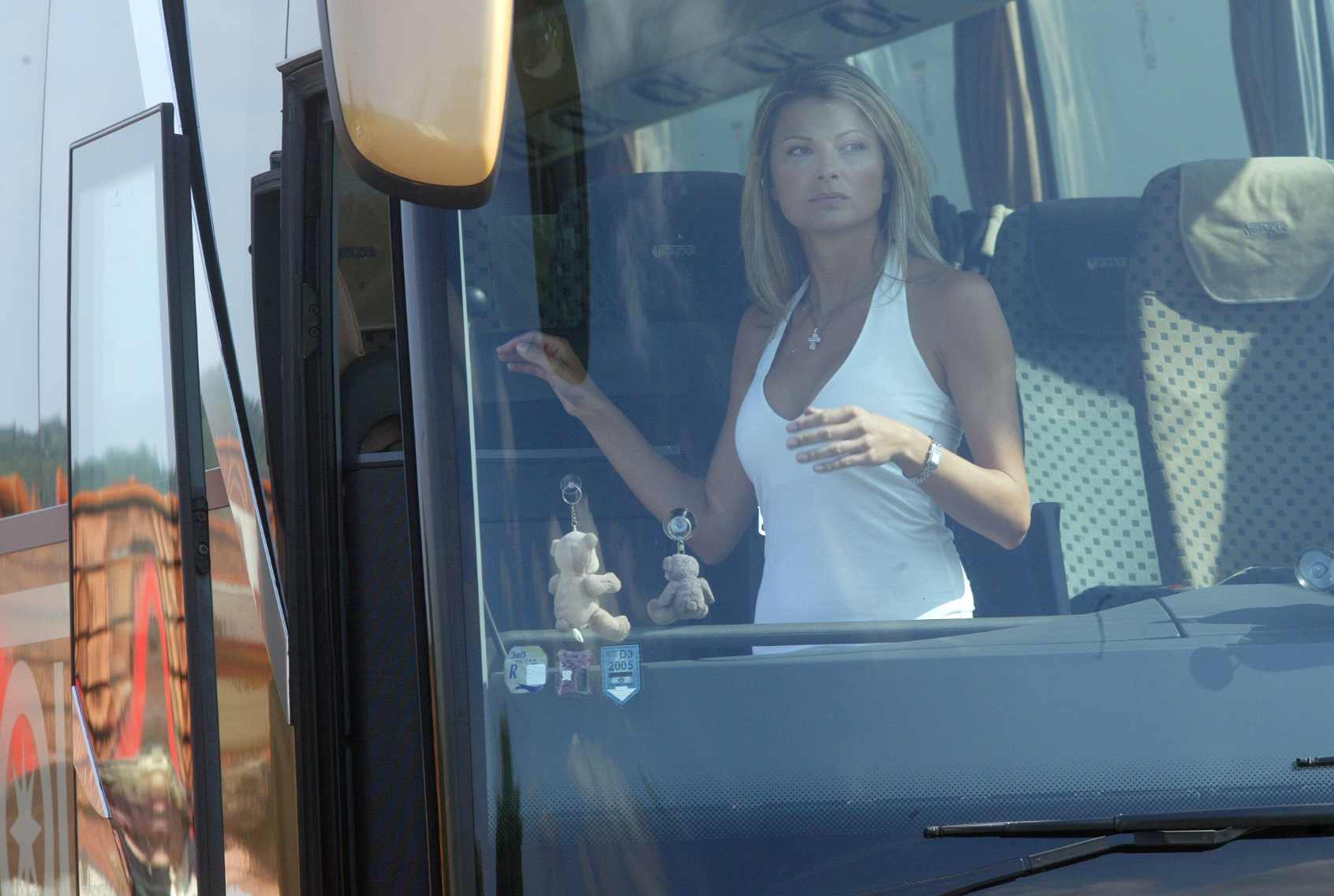 Úvodní sekvence odjezdu dovolenkářů využívá rafinovanou geografickou kličku. Autobus sice zpočátku opouští hlavní město po dálnici D1, následná zastávka u benzinové pumpy se ovšem odehrává na zcela jiném místě. Filmaři přesunuli produkci na rychlostní silnici R4 nedaleko Dobříše. Štáb tak získal mnohem lepší logistické zázemí pro manipulaci s těžkou technikou i samotným obřím komparzem.