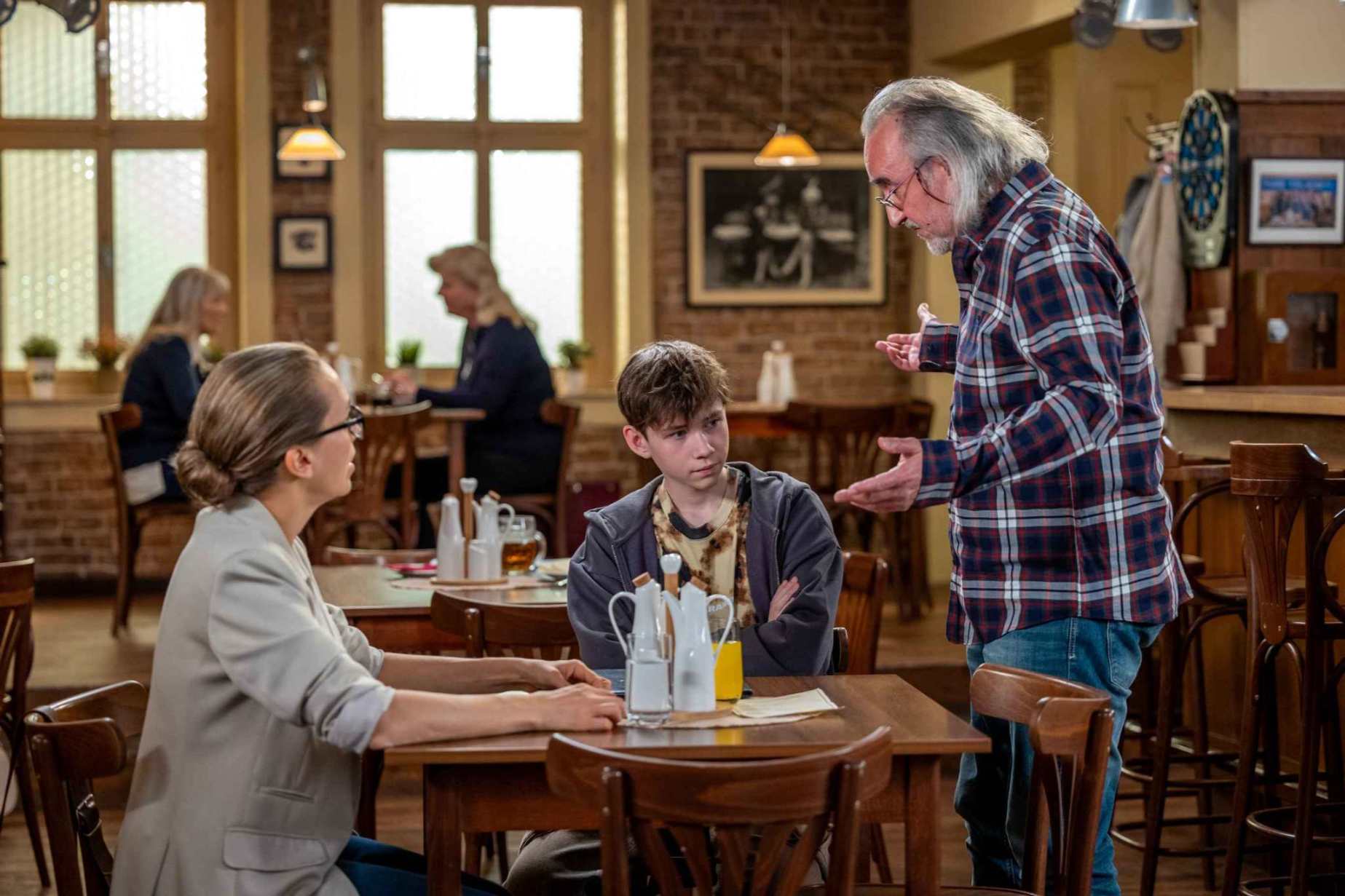 Soňa (Lucie Vondráčková) se s Erikem (Adam Seidl) vydá na oběd. Když si všimne jeho rozbitého mobilu, začne se vyptávat. Erik nechce mluvit, ale jeden ze štamgastů, který byl u incidentu, do toho vstoupí a všechno jí popíše. Soňa pak vyrazí rovnou za Jirkou Hložánkem (Ondřej Havel) domů a chce po něm řešení. Ten ji ale odkáže na policii. Soňa má opět rudo před očima a nezapomene připomenout, že když řešil ji jako ředitelku, byl s ní rychle hotový. Ale do tohoto se mu nechce.