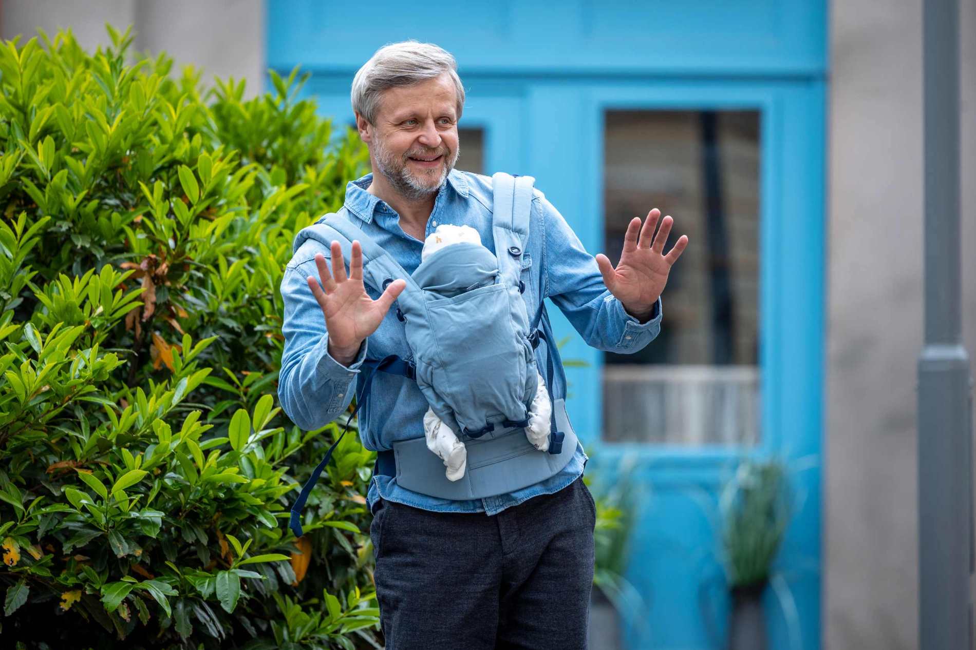 Luděk (Vasil Fridrich) se nechal od Kristýny (Sára Korbelová) přemluvit a pořídil nosítko pro malou Esterku v nosítku. Jenže realita je pro něj náročnější, než čekal. Místo hrdého tatínka vypadá spíš jako robot, který se bojí pohnout. A když ho Esterka pokřtí ublinknutím, je úplně bezradný. Pomoc mu nabídne Blanka, která se náhodou ocitne poblíž.