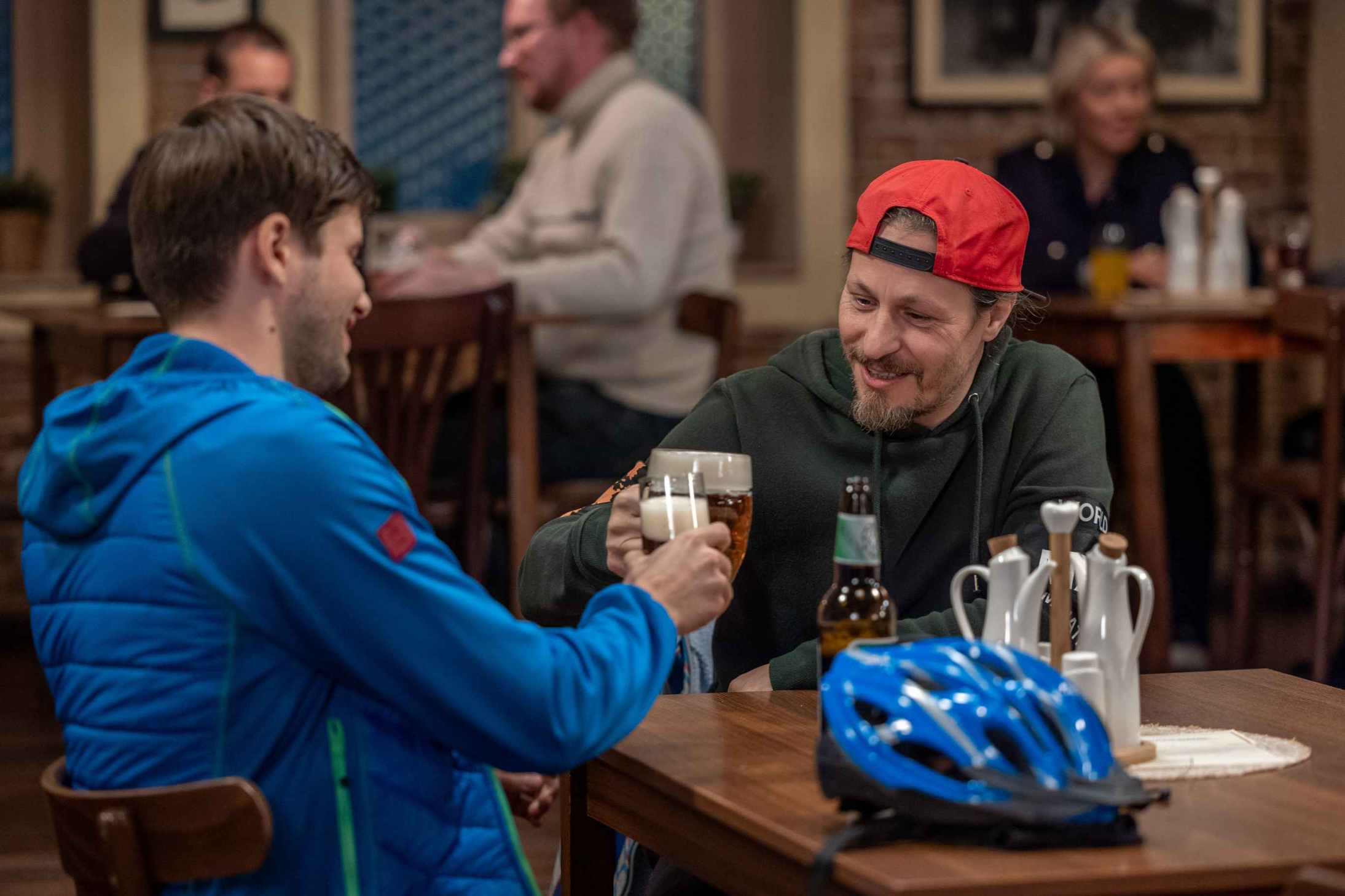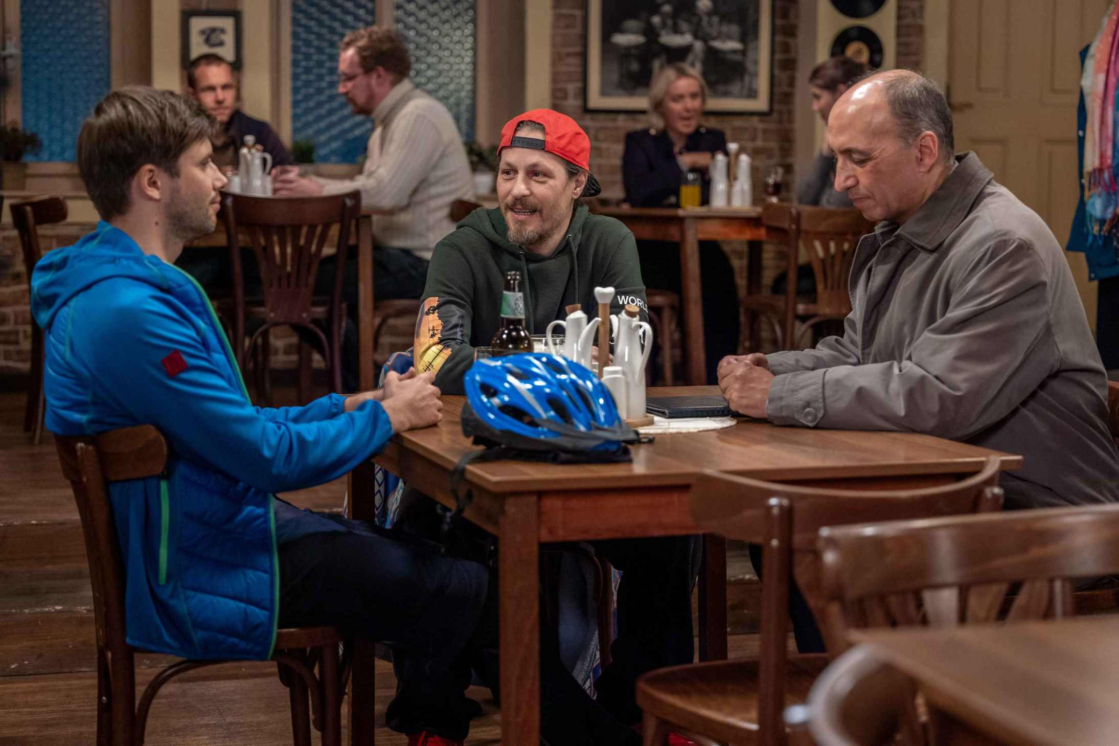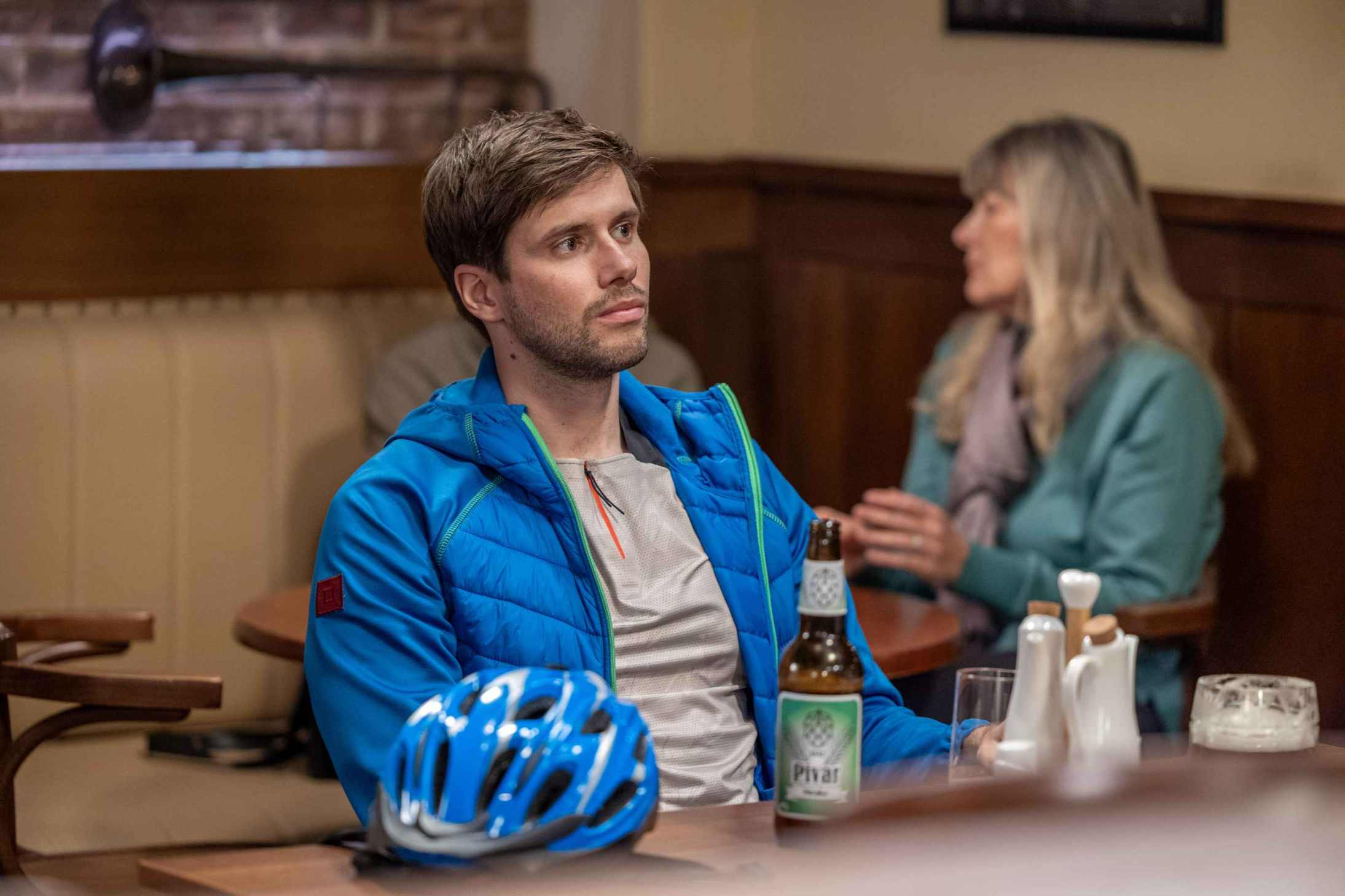 Do hospody, kde zrovna sedí Mário s Jirkou, dorazí Koníček pro jídlo. Mário jej ihned vítá a zve, aby si sedl k nim. Ani jednomu to není příjemné, ale nakonec si k Jirkovi přisedne. Mário se vrací k tomu, v jakém stavu Koníčka našel a že to chce kuráž, aby pak vylezl po takovém útoku ven. Jenže než to dopoví, zvoní mu mobil a běží si vyřídit ven hovor.