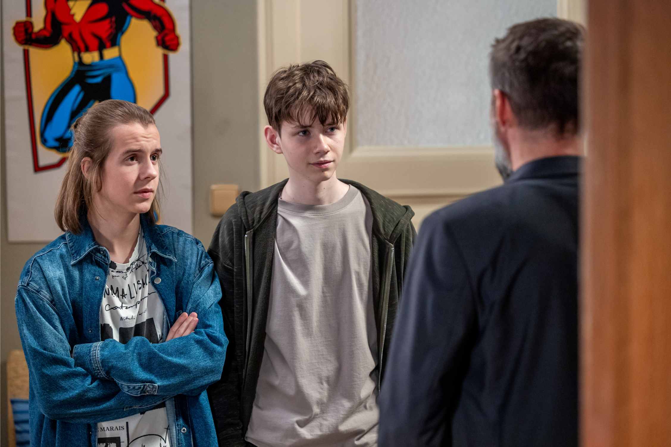 Do dramatického děje se zapojí i Egon (Bořek Slezáček), Soňa (Lucie Vondráčková) a Erik (Adam Seidl). Setkání začíná výčitkou Egona směrem k bývalé manželce: „Co se divím, že kluk lže, když má v tobě takový příklad.“ V urážkách ještě chvíli pokračuje. Vzápětí přichází Erik a po jeho boku nečekaně i Michal. Slovo si pak bere Soňa. Oznámí, že syn půjde na jazykovou školu a bude se připravovat na vysněnou multimediálku.