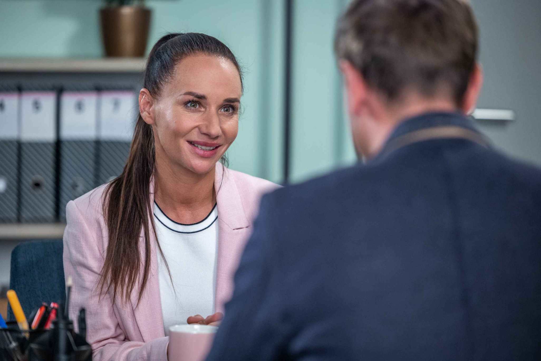 Adriana s tím nesouhlasí, ačkoli ví, že by ho musela financovat sama. Na chodbě pak potkává Eddieho (Jiří Panzner) a hned mu vypráví, proč je tak bez nálady. Eddie jí opět nabízí pomoc. Mohla by v jeho kroužku atletiky předvést v rámci rozcvičky taneční vystoupení a tím si děti získat. Adriana ho vděčně obejme. Celou situaci zpovzdálí sleduje zaujatě Prokop.